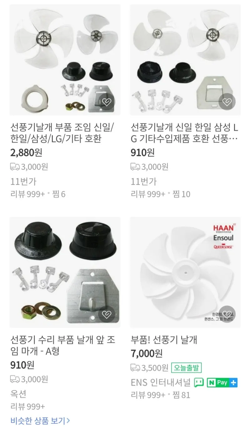 신일 선풍기 리모컨 구입 및 부품 구매로 날개 스핀너 망 모터까지